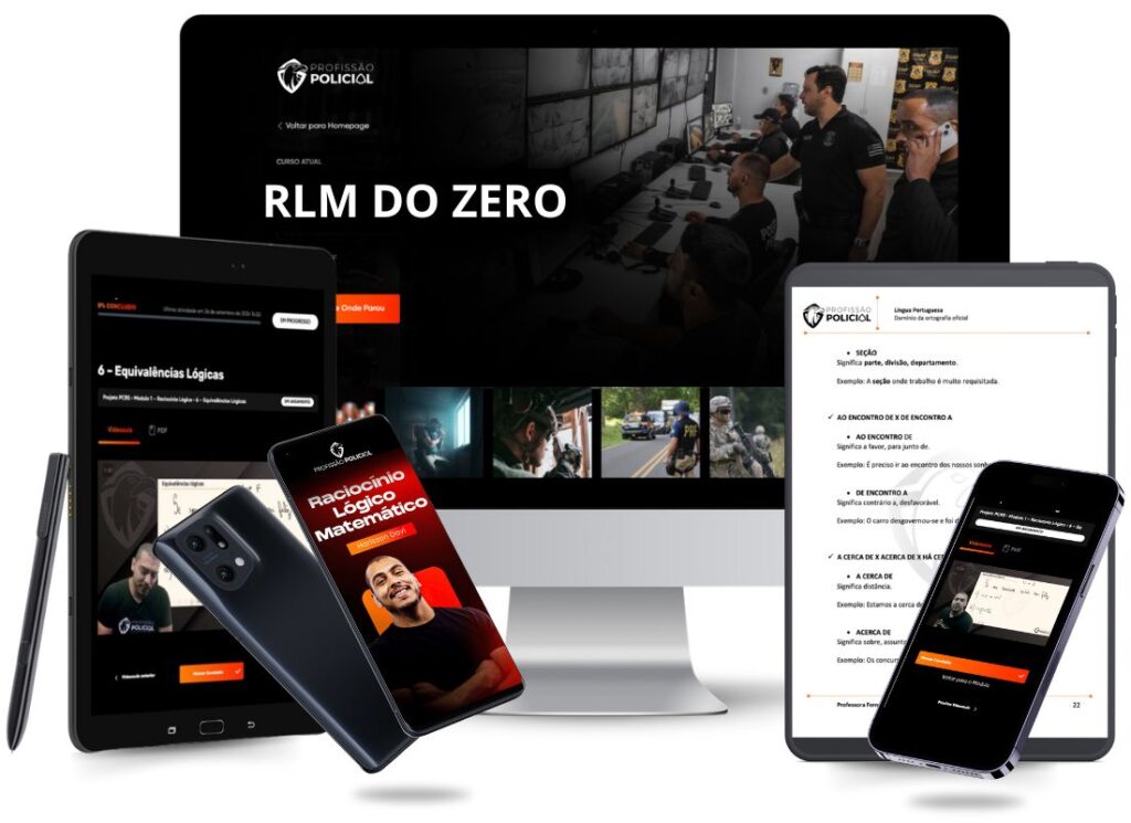 Nossas aulas de Matemática são inéditas e atualizadas (2024), com teoria simples e questões direto ao ponto, focando no que realmente cai na sua prova para concursos policiais.